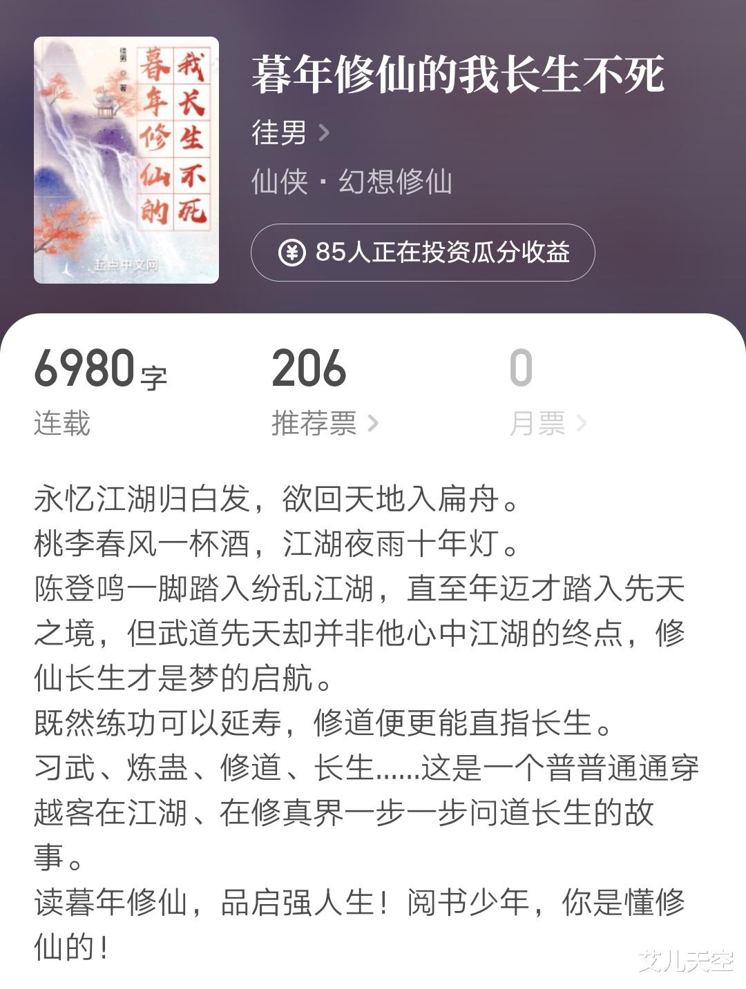 下午看到徍男开新书了,书名《暮年修仙的我长生不死》颇有种跟风写现在流行的各种长生文的意思。