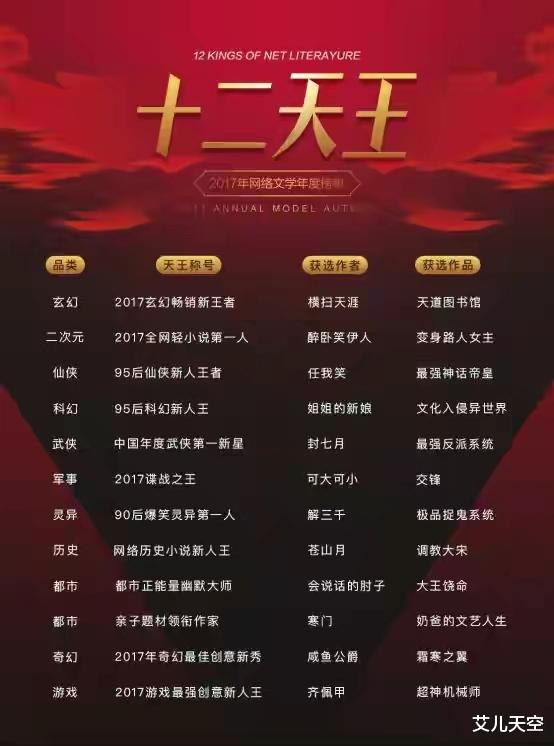 以上就是七届十二天王的名单情况了,越近诞生的大神越少,不知道这些作者里你都熟悉哪些人呢?