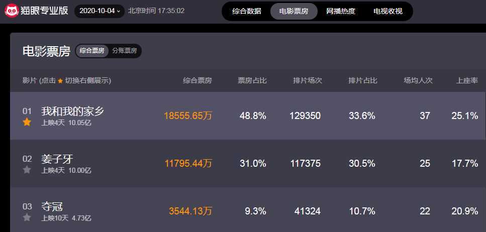 10月1日,国庆档放映正式开始 市场在疫情后 终于迎来第一次真正的井喷