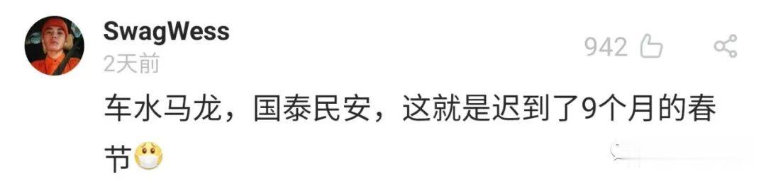 有网友说: “车水马龙,国泰民安, 这就是迟到了9个月的春节”
