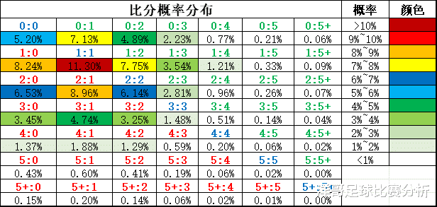 综合分析,本场主不败概率较大;总进球方面本场小球(012球)概率47.63%,大球(3球及以上)概率52.37%;比分方面,1:0、1:1、2:0概率较大。