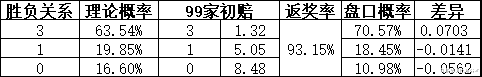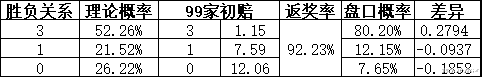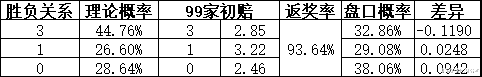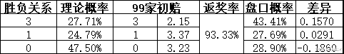 最终,经过模型推算得出的胜平负概率以及根据机构开盘数据计算的胜平负概率见下表: