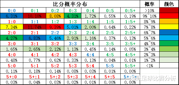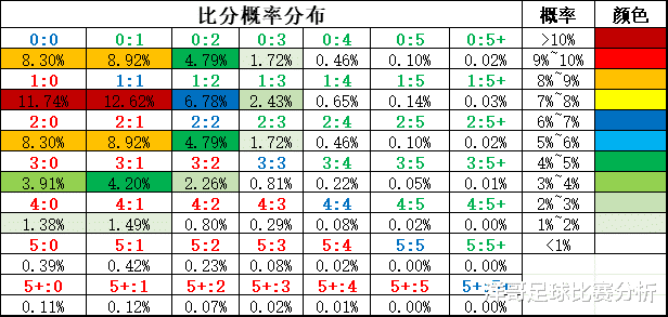 根据近20场技术统计,主队主场场均进球1.5个,场均失球1.8个;客队客场场均进球1.1个,场均失球3个。根据模型测算,本场主队进球数、客队进球数及总进球数的概率见下表: