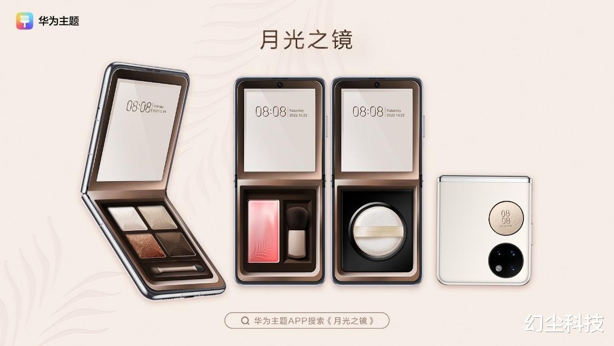在折叠形态下,P50 Pocket宛如化妆盒般精致小巧,《月光之镜》主题就是以此为创作灵感,通过唯美的壁纸设计,以及“鎏光眼影”、“樱语腮红”、“柔光蜜粉”三款内外屏交互锁屏,令P50 Pocket成为让人爱不释手的“月光宝盒”,充满了优雅浪漫气息。