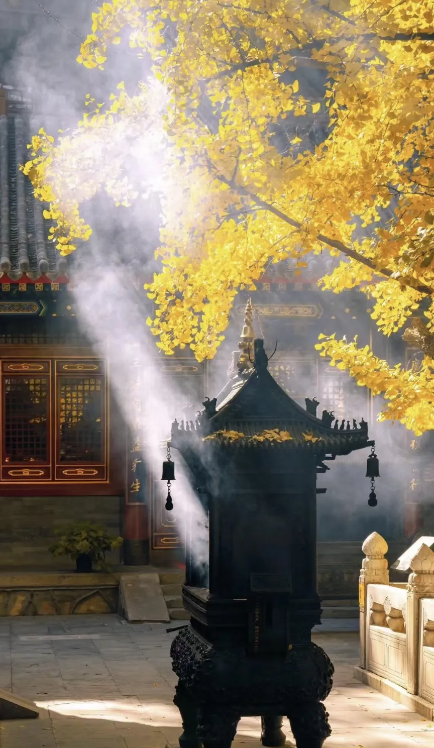 古寺香烟袅袅🌫️,满园银杏落秋风🍂,这是秋天专属于北平的浪漫🥰。
