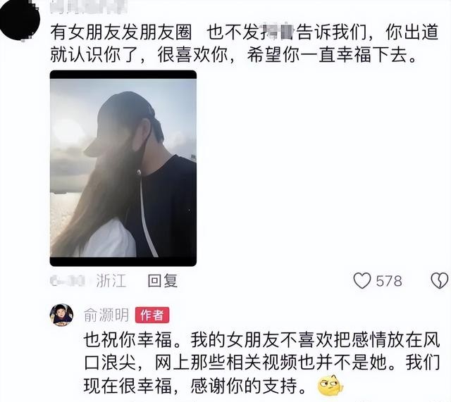后来才知道,原来是王晓晨呀,网友们觉得他们藏的也太深了,俞灏明也在评论区回复称:我们很幸福,女朋友不喜欢把感情放在风口浪尖上,谢谢网友支持。