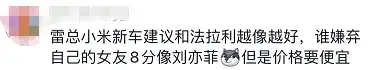 还有网友表示:“法拉米要来了”、“雷总这是坐实了小米SUV的样板车是法拉利?”