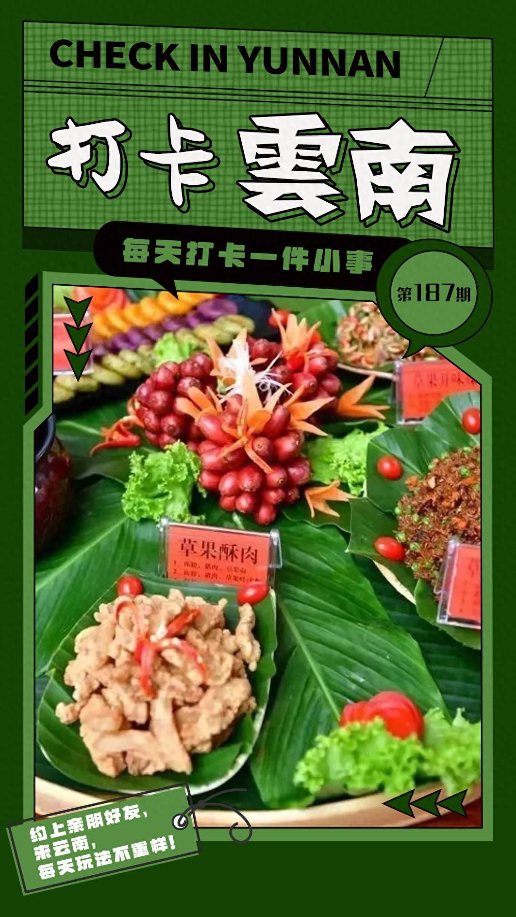 怒江盛产精品草果,草果全身是宝,草果花苞、草果芽、草果鲜果都可以用来制作菜品,将草果与当地特有的传统食材、新鲜蔬菜结合,呈现出一道道美食。