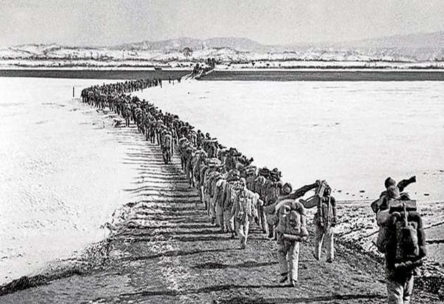 我军五个师大约六万多人,只得被迫挤在离临津江南岸,约二十平方公里的狭窄地带,连续两天遭到敌军的密集火力打击,敌军又投放了大量凝固汽油弹,这种炸弹在爆炸的一瞬间,1200摄氏度的高温也同时向四周溅射,一旦不小心沾到皮肤上,便无法熄灭,直至燃烧殆尽,使我军惨遭大量伤亡。