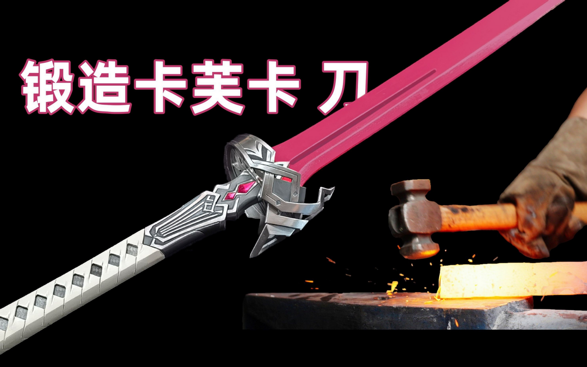 比如知名手工区UP主就亲自上阵,锻造出卡芙卡的佩刀,刀长1.1米,重4.4斤,用416不锈钢打造,还有人造鸽血红宝石镶嵌,极为耀眼。