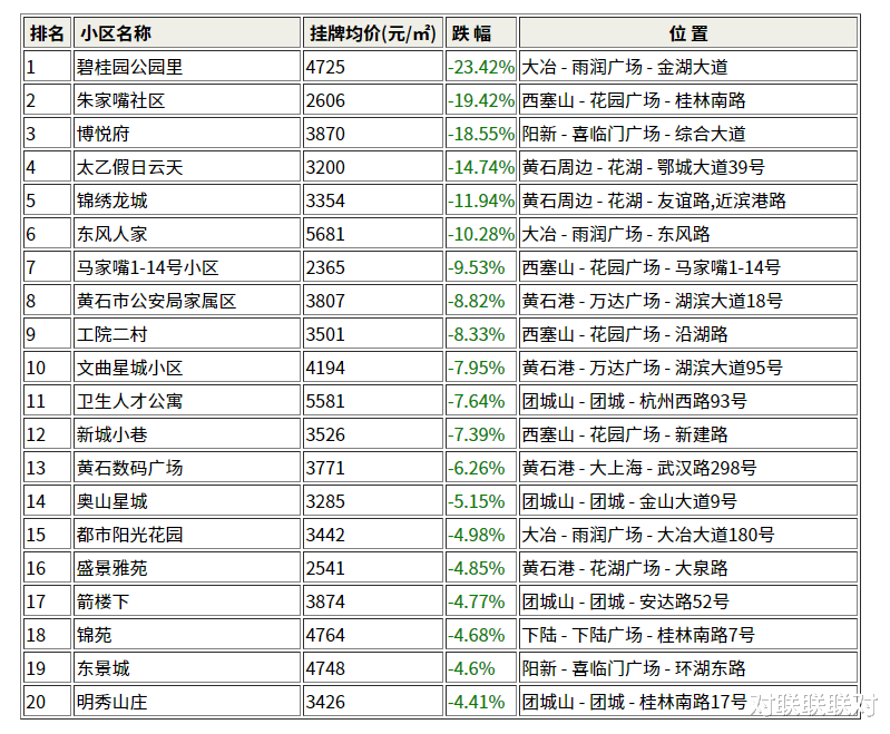 7、聚龙世纪嘉园:3246元/㎡,上涨+5.93%,位置:黄石周边 - 花湖 - 杭州路2号