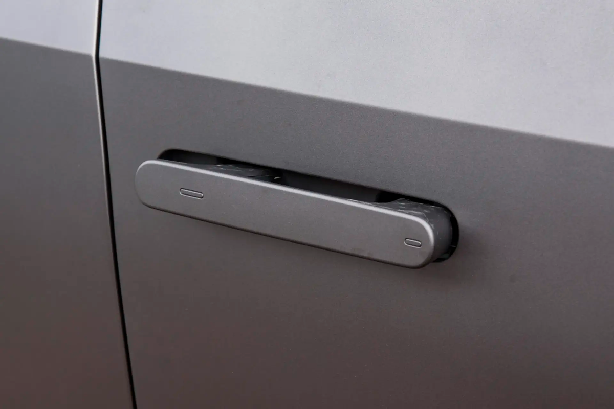 细节上我们能看到,设计师巧妙地将电气化流行元素融入其中,像三段贯穿的流光大灯与全黑运动套件则让方正的车头多了几分未来感;而隐藏式门把手则减少了车身侧面的割裂感,所有的线条也都是一气呵成,加上半封闭的格栅装饰,也足以在新能源中“以假乱真”。