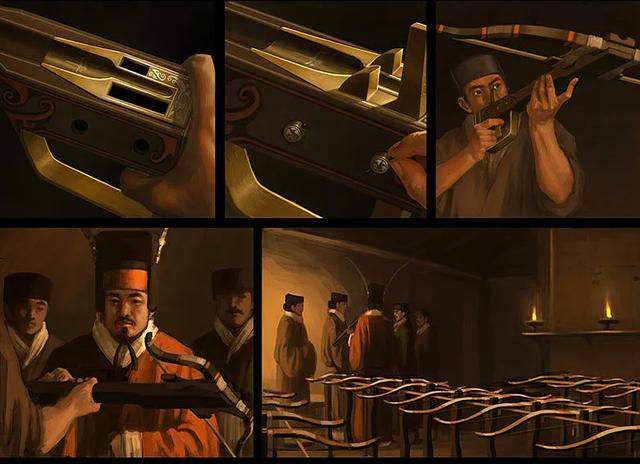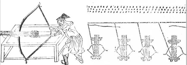 此外,《后汉书-陈球传》里则描述大黄弩为:弦大木为弓,羽矛为矢,引机发之。可见其结构仍为常规弓臂,在技术方面并无多少高深之处。简而言之就是某种单兵弩的夸张放大版,主要由弓臂、弩床、弩机和用以张弦的机具构成,使用者只要数量足够就能轻松驾驭。而且这类“放大弩”被后世长期传承,乃至宋朝编著《武经总要》的阶段都不曾出现过根本性变化。