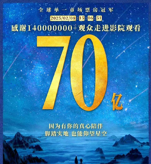 而此时距离冲破70亿票房的战绩也仅仅过去了不到2个小时而已。