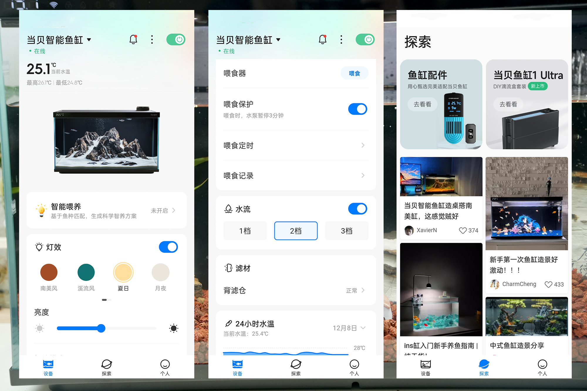 于我而言,拥有当贝智能鱼缸 1 Ultra 后的日子,养鱼从繁琐 “苦差” 变身惬意享受。忙碌一天归家,瘫坐沙发,轻启 APP,灯光切换至暖调南美风,鱼儿穿梭光影,灵动悠然,疲惫瞬间消散;出差前夕,远程投喂设定妥当,旅途再无牵挂。