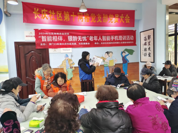 为帮助社区老年人更好地融入智能时代,享受科技进步带来的便利,2024年12月13日,四川省成都市金牛区营门口街道长庆社区关工委、蓝色空间爱心志愿助老服务队在蓝色空间小区邻里之家联合举办了“智能相伴 银龄无忧”老年人智能手机培训活动,活动吸引了50余名老年居民参加。