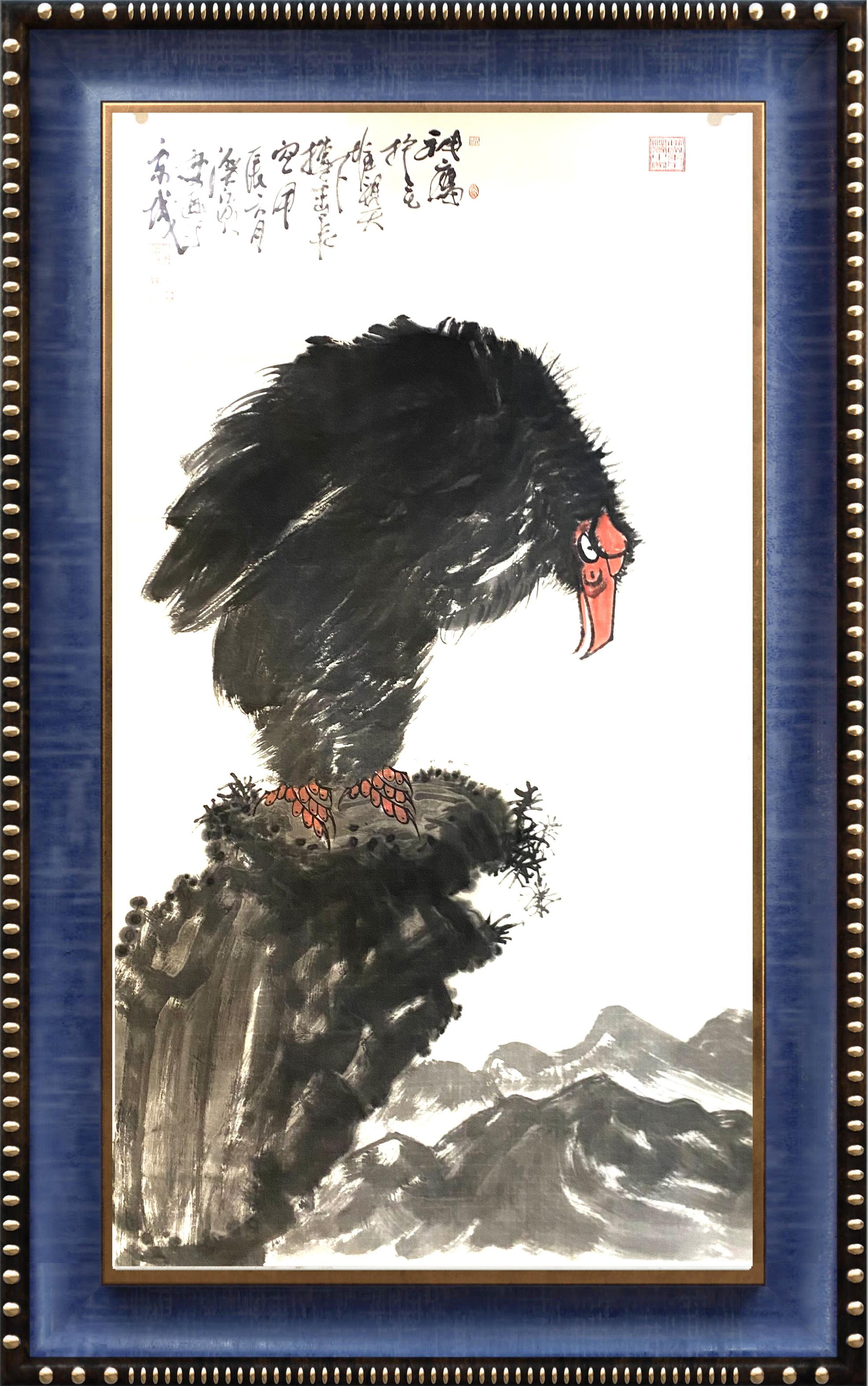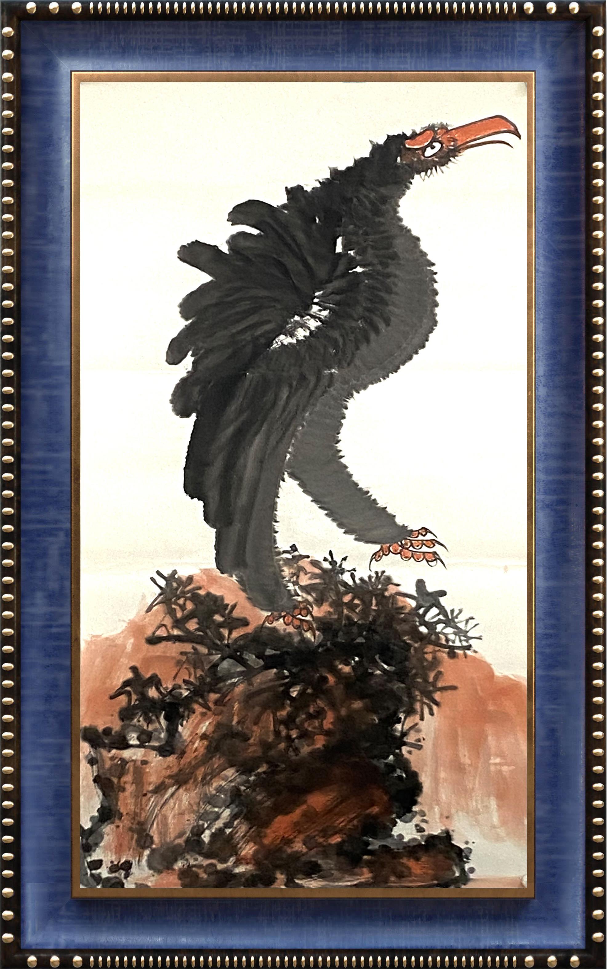 从表面看,李苦禅的花鸟因素在他的作品中打上了最为鲜明的印记,其山石的形态和点苔、鹰、鹭、八哥等禽鸟形象的描绘都与李苦禅息息相关。朱祖国在师法李苦禅画风时很好地抓住了其“拙”的审美特点,其花鸟造型的奇拙,笔墨的迟拙,都在朱祖国花鸟的语言表现中得到了自觉的保留。