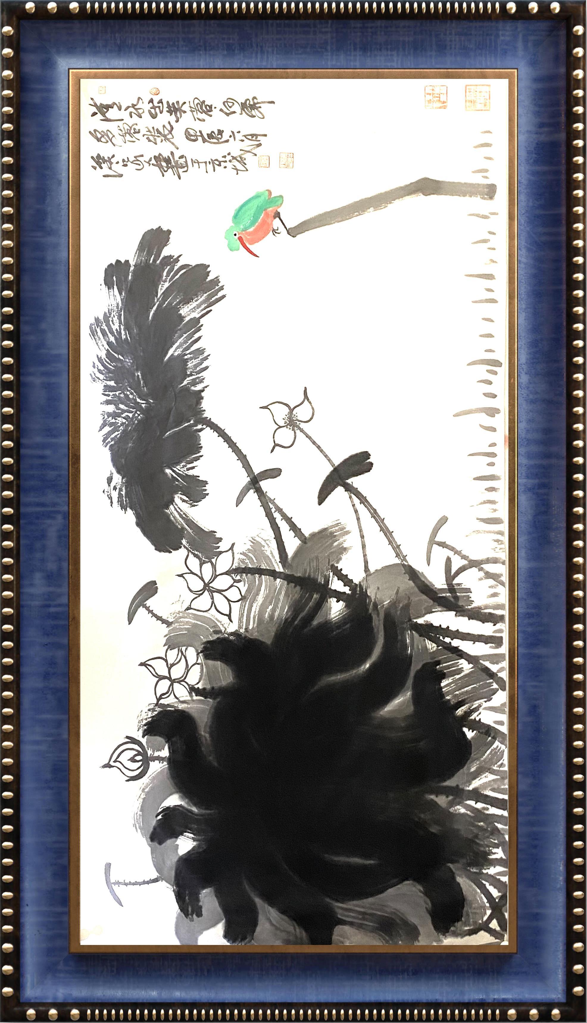 朱祖国的大写意花鸟作品虽亦墨沈淋漓满纸氤氲,却独有了别一番的清韵雅致。可以想见,画面上墨韵线条都不是随意放置的,而是经由反复酝酿后,从容不迫地施运而成的,因而他的画面上的这一份清雅,乃是于笔墨之间透溢而来的。