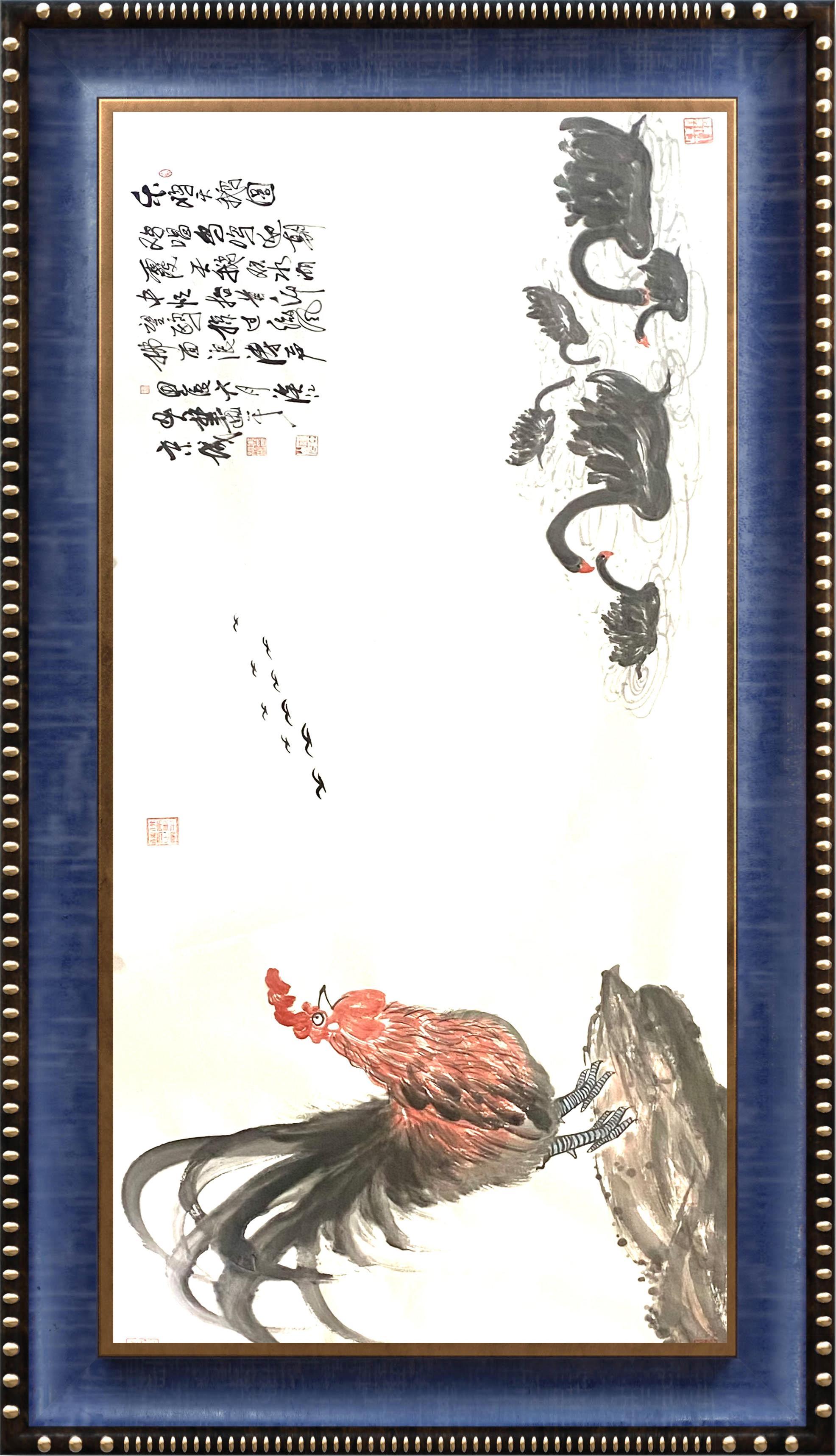 朱祖国很好地鉴取了潘氏画风中的“刚峻”的审美因素,并使之内化于骨,从而为自己的花鸟形态构筑了一个坚实而刚健的体骼。正是这样,所以朱祖国的花鸟决无促狭窄小柔靡之感,而往往是现出一派刚而大、拙而健的艺术格局和气象。