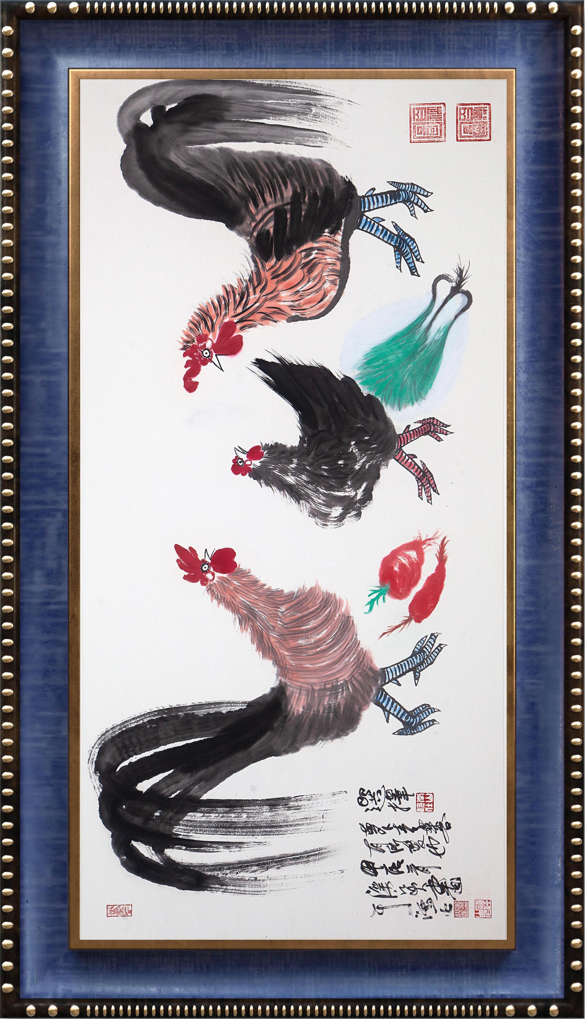 从画法渊源上看,朱祖国的花鸟可谓转益多师,但齐白石、潘天寿和李苦禅显然是他最为倾心的三位先师。不妨说,朱祖国的花鸟力求将这三位先师的画风在他的作品中重新组合起来,并发挥不同的建构作用。