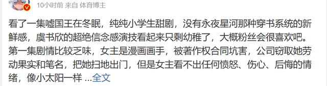 另外就是虞书欣越发固化的演技,在点评她演技的时候,有网友一针见血的指出:她的演技完全达不到粉丝吹捧的那么高。
