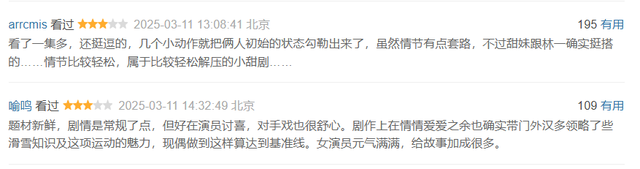 很多情节给人感觉没什么营养,一点不尊重基本逻辑,就是一部靠甜蜜恋爱撑起来的冬日小言剧。