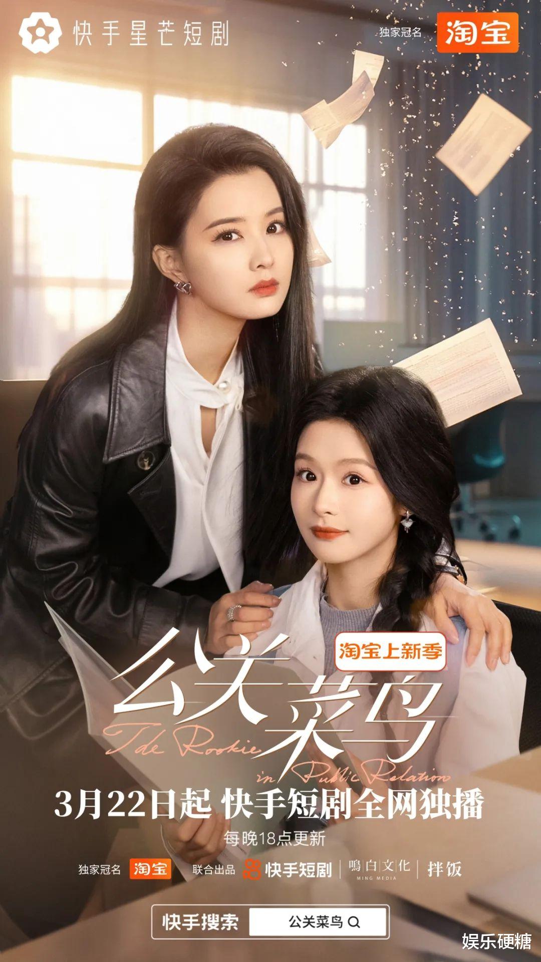 《公关菜鸟》由余茵、张楚萱主演,3月22日上线,讲述了初入公关行业的檀蕴喜提“女魔头”上司,在职场披荆斩棘的故事。两部剧都由淘宝独家冠名,快手短剧、鸣白文化、拌饭信息联合出品。