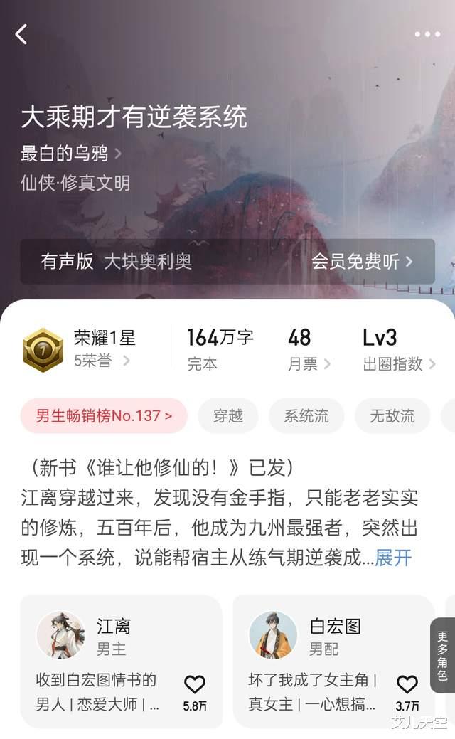 再说回白乌鸦,除了新书《谁让他修仙的!》成绩在快速上升,完结老书《大乘期才有逆袭系统》完结了一年四个月,成绩也从完结时的均订一万八升到六万以上了。