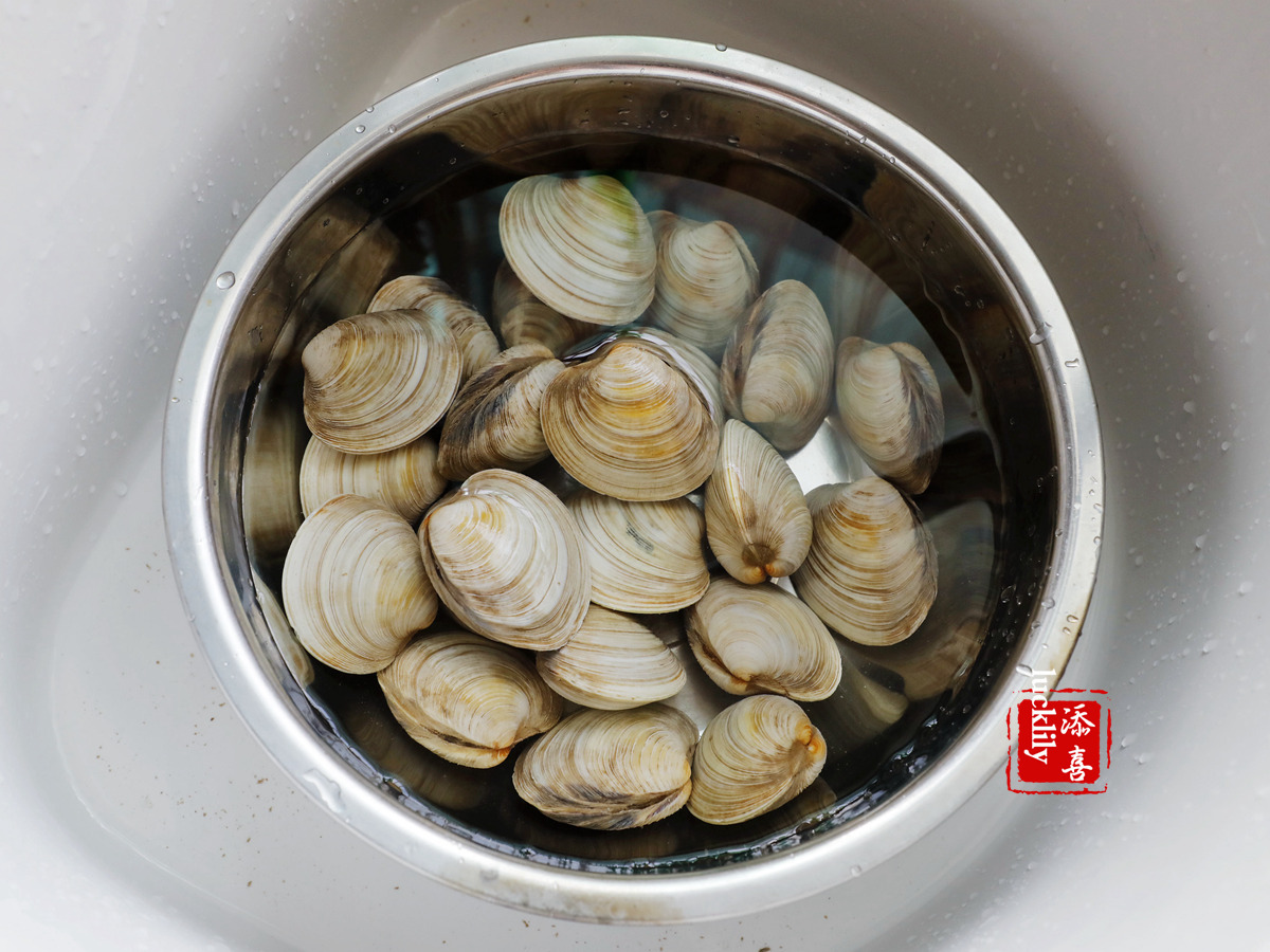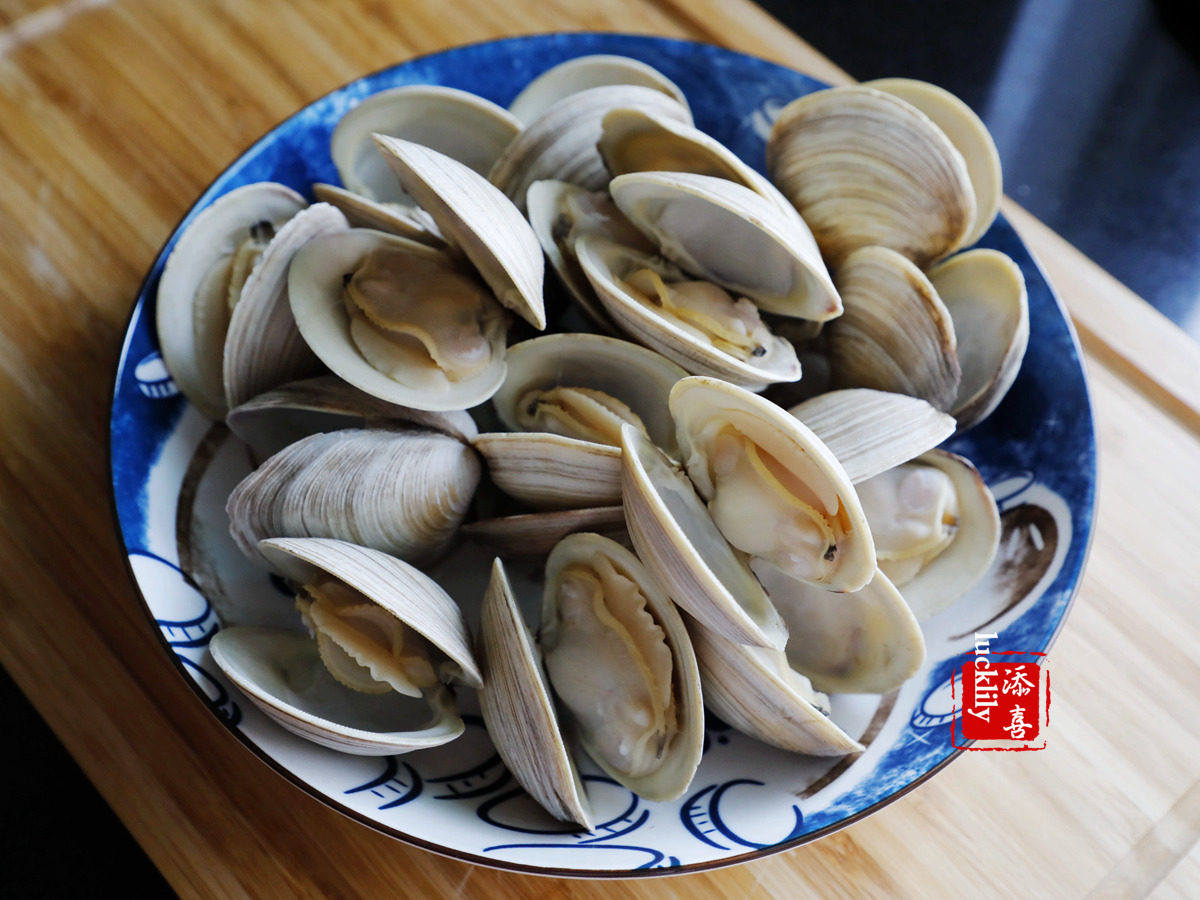 1、记住一定要在沸水中放入大蛤蜊哦,不然蛤蜊可能会越闭越紧,不开口(购买时海鲜档口的老板跟我说的);