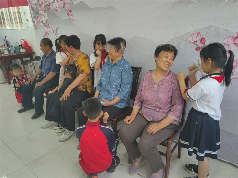 在幸福社区新时代文明实践站,由海丰街道辖区的同学们充当小小志愿者,为老人们送上一份儿童节的特别礼物,帮助老人按摩、捶背,向老人们表达自己的慰问。通过本次活动让同学们体验到劳动奉献和帮助他人所获得的成就感和幸福感,以小爱送大爱为老人们带去欢笑与抚慰,也给同学们在六一儿童节上了一堂生动有意义的实践课。