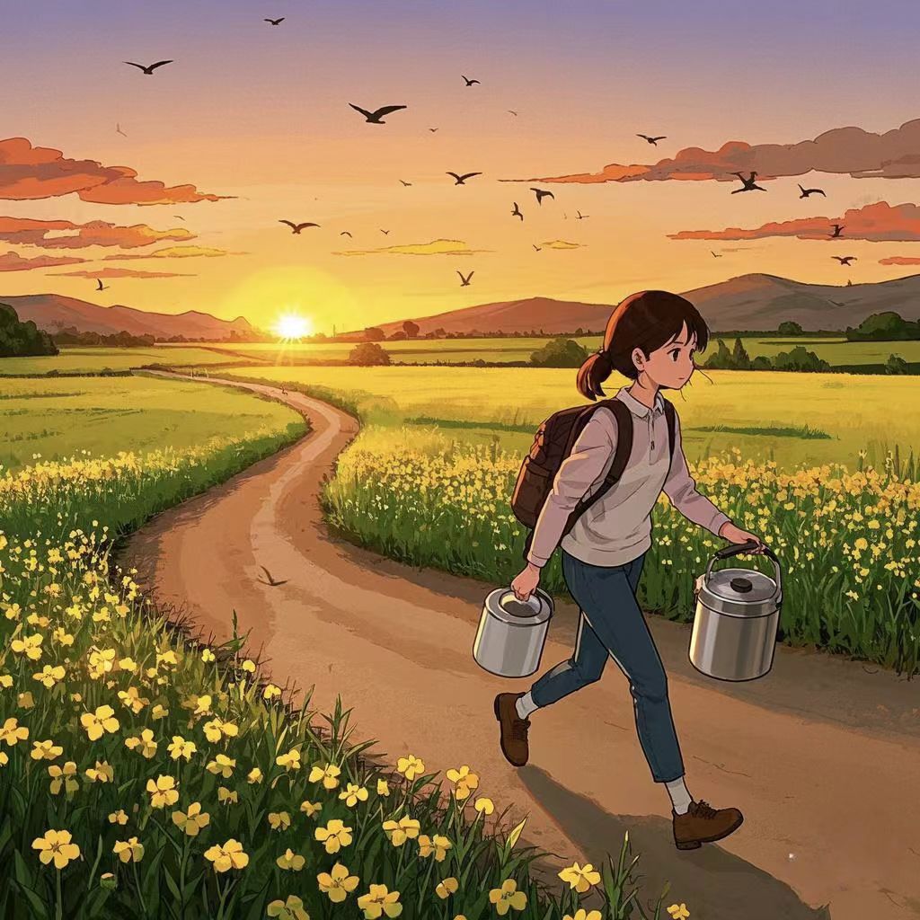 刚开始的时候,隔壁村的几个同班小伙伴和我一起走,他们帮我拿了一些东西,让我轻松了不少。可是,当他们到家后,我还得独自翻三个沟才能回到自己家。此时,剩下的东西中,电壶和电磁炉又大又沉,特别难拿。