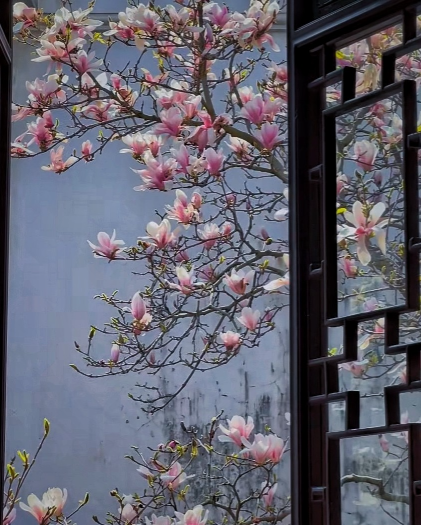 看看这棵窗中玉兰有多美,老祖宗造景技巧真的神了!耦园窗景玉兰,是春日里的诗意瞬间,亦是中式框景美学的极致体现。