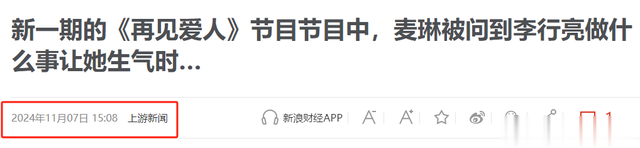 上游新闻——新一期的《再见爱人》节目节目中,麦琳被问到李行亮做什么事让她生气时…