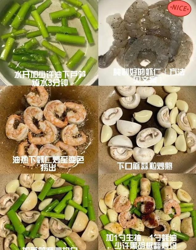 腌制方法:虾仁处理干净+1勺料酒,适量黑胡椒粉抓匀腌制10分钟。