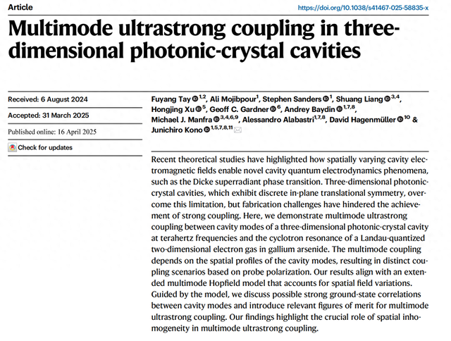 在这项研究中,科学家们通过太赫兹辐射观察到了这种超强耦合状态。他们发现,不同的腔模(光子的行为模式)与电子的耦合方式,不仅受到光的极化状态影响,还能在特定条件下触发新的“混合模式”。