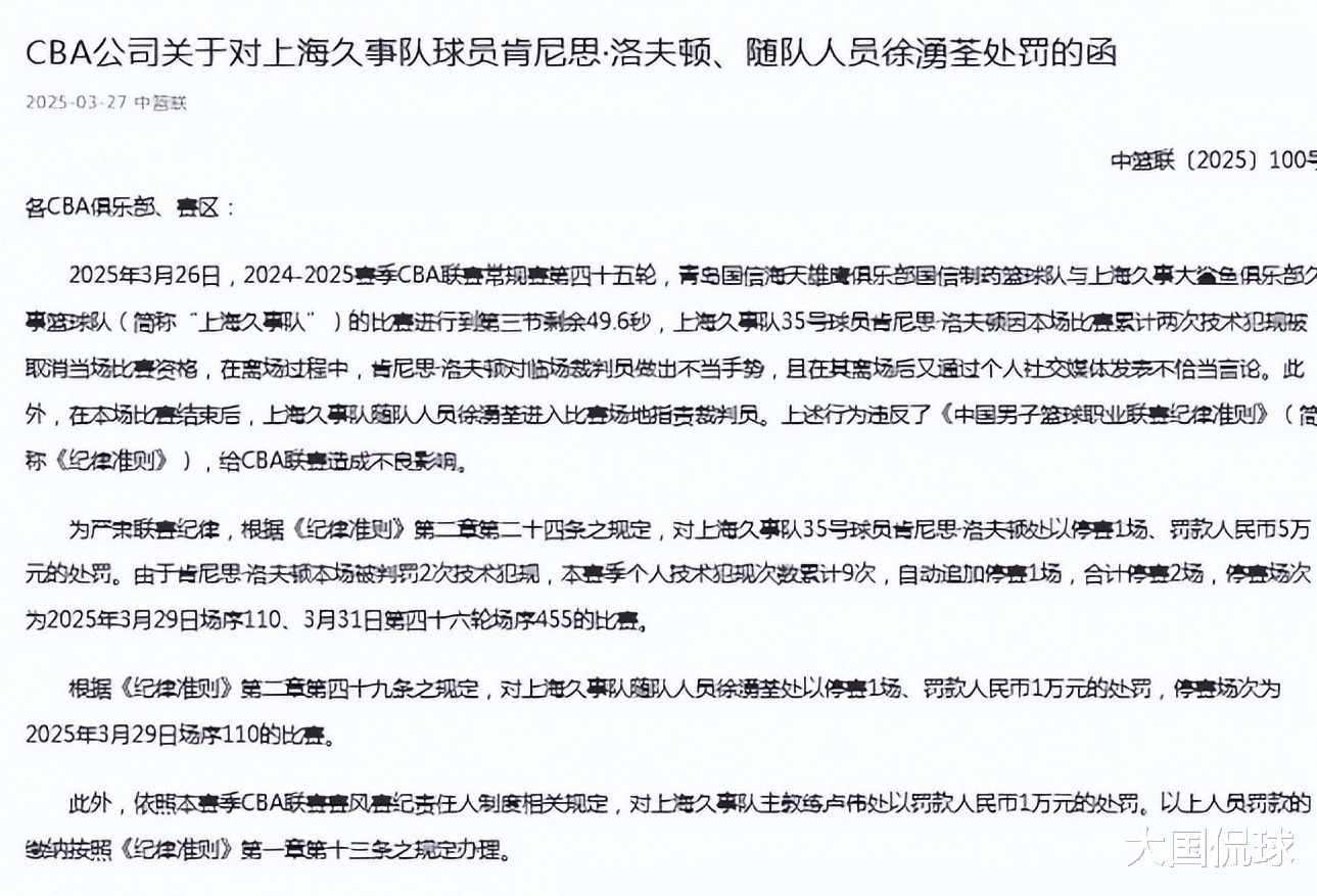 而且,洛夫顿在常规赛末尾对阵青岛的比赛就因为冲撞裁判+赛后社交抱怨被禁赛2场罚款5万,如今他的老毛病又犯了,如果这一次赛后不满发声被联赛罚款还是小事,若洛夫顿在后续比赛中再次闹脾气,再次因为没要到犯规而去顶撞裁判,这搞不好又会让其收到停赛罚单。所以,广东男篮在当前可谓是大赢家。