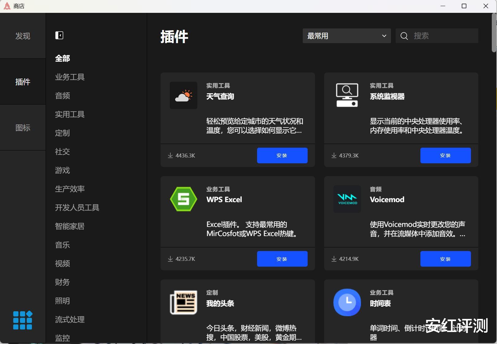 软件添加通过拖拽的方式,从功能插件列表直接移动到对应的编辑区,并在下发弹出框内进行输入,即可在黑爵AKP05显示图标,并可一键调用设置好的插件。如果在预设软件没找到合适的,或者对图标不满意,还可以去此款软件自带的官方商店,自行下载并进行DIY,自由发挥创意,彰显个性。
