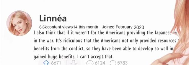 但一名来自瑞典网友却给出了不同的看法,他表示瑞典作为一个没有参战的国家,可以客观的告诉大家,美国在那场斗争中扮演的就是一个商人的角色。