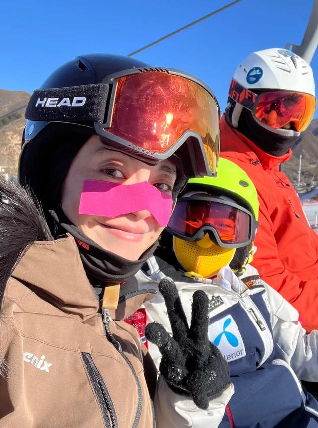 姚晨十一岁的儿子小土豆穿着滑雪服,拿着滑雪板拍照,看样子帅气十足,也长高了不少。