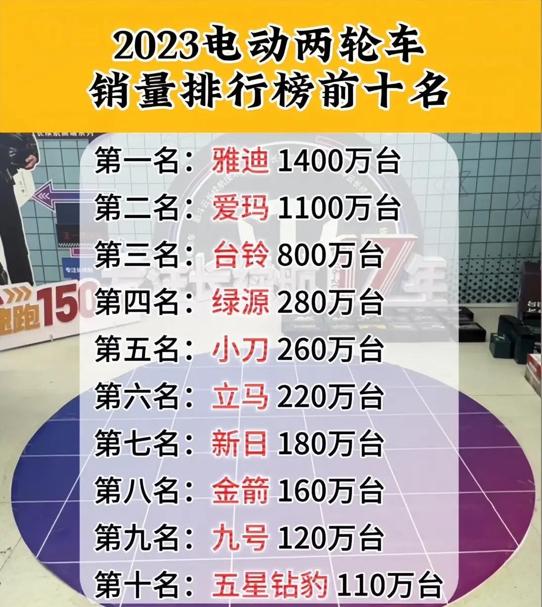 2023年的数据显示,雅迪、爱玛的销量更高,分别达到1400万辆和1100万辆。对比之下,我们可以看到,这两大巨头虽然仍然占据榜首,但销量下滑的趋势已经非常明显了。