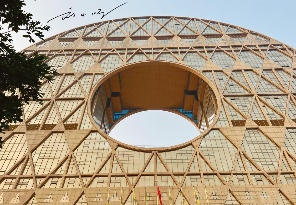 “广州圆大厦”确实名如其楼,整个建筑都是圆形的,而且还通体金色,远远看过去,真的就像一块大金币一样,特别吸引眼球。