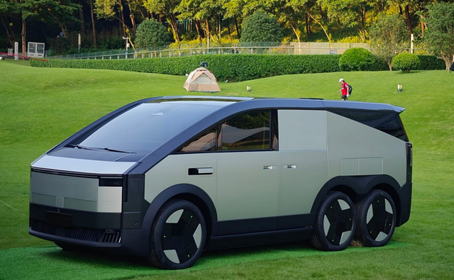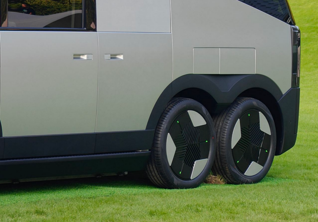 别看起来这台车不太像车,但是长5.5米,宽2米,高2米的尺寸,竟然和一些较大的MPV比较接近,比如奔驰V260L,这也意味着,一些较大的停车位,这台车是能够停进去的。当然,这台车最吸睛的,还是它采用了6轮的设计,而且是6?6的驱动模式,这意味着这台车有着较强的通过性能。