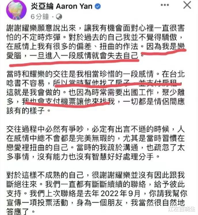 其实炎亚纶在跟他交往的时候也一直都在偷吃,后面小男生还被他pua洗脑,一度认为是自己不够好才会让炎亚纶去外面找别人,炎亚纶控制了小男孩之后行为就更加放肆。有时候甚至还会带着男小三回去跟小男友同住,玩起了三人行的游戏。