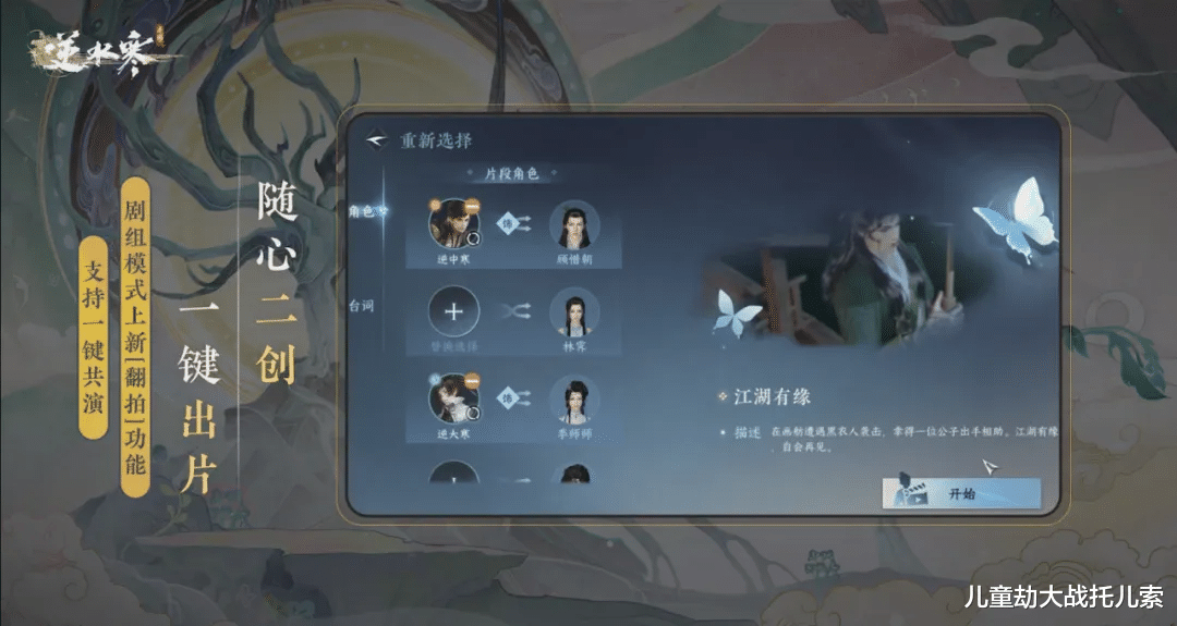 就说最近上线的AI翻拍模式,玩家可以选取游戏中的任意剧情,把角色替换成自己的门客或者结义,玩家还可以随意更改剧本中的台词、花字,后续将更新配音自定义功能。这样玩家可以随意复刻自己喜欢的动漫角色,开启最为强大的翻拍模式。