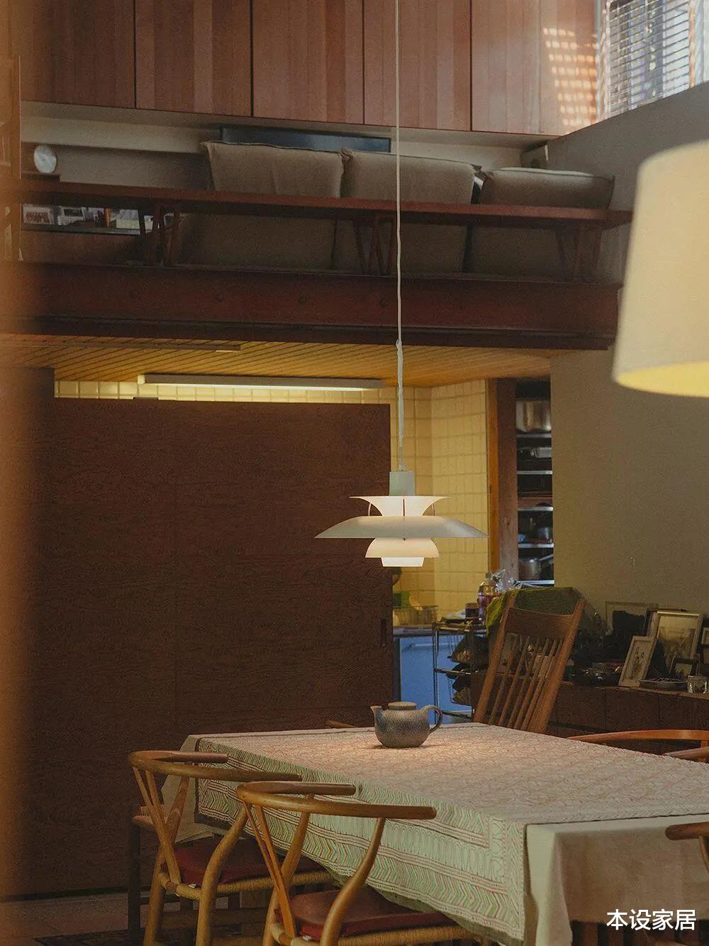 同时,选择米白色布艺沙发、橡木茶几等低饱和度家具,摆放在最恰当的位置,夫妇俩在这里看书、喝茶,时间仿佛流得格外缓慢,每一刻都被拉长,每一秒都被注满。