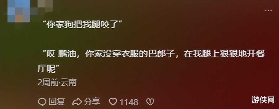 当想表达“你家狗把我腿咬了”的时候,他们也不会直接把话给说清了,而是随机找来了个奇奇怪怪比喻,然后以正常人难以想到的方式形容了一下当前的状态。