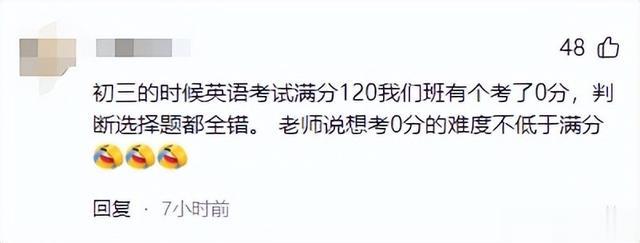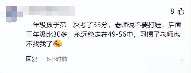 有家长说自己孩子一年级才考33分,现在三年级了还在49-56分之间徘徊,早就习惯了。还有家长说自己孩子初三英语考了0分,老师都说这难度不低于考满分。