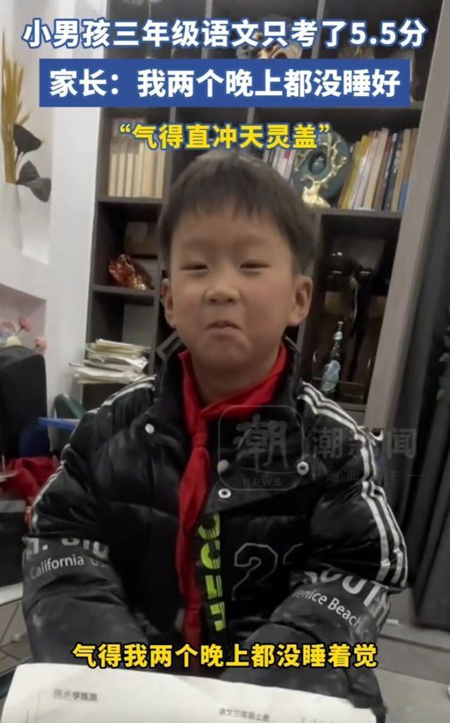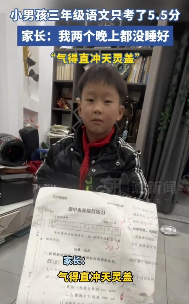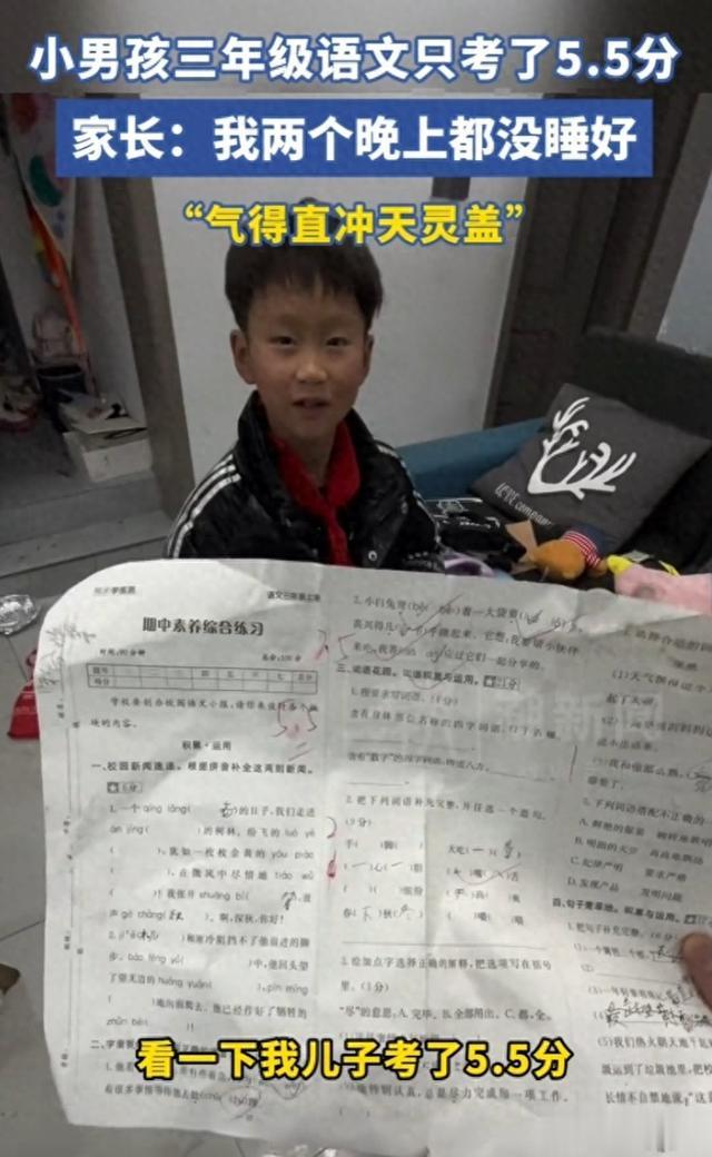 各位宝爸宝妈们,最近网上有个事儿可真是火了!贵阳一个三年级的小男孩,语文期中考试竟然只考了5.5分,这可把他爸给气得呀,据孩子爸爸说“都快气得直冲天灵盖了”,连着两宿都没睡好觉!这事儿一出,评论区瞬间就炸开了锅,各种神评论看得我直接笑晕!