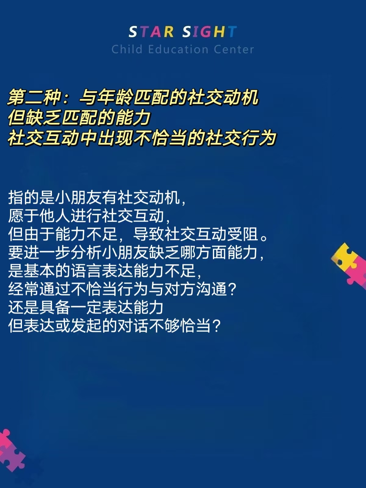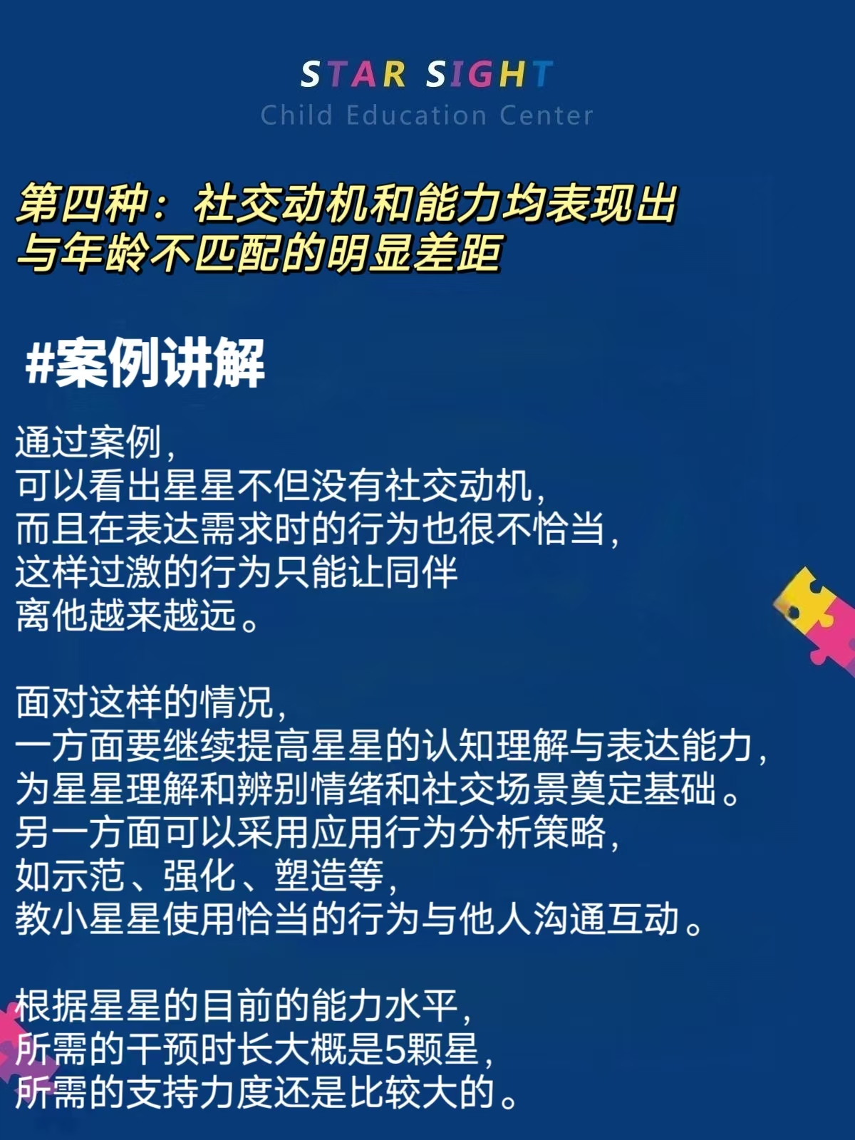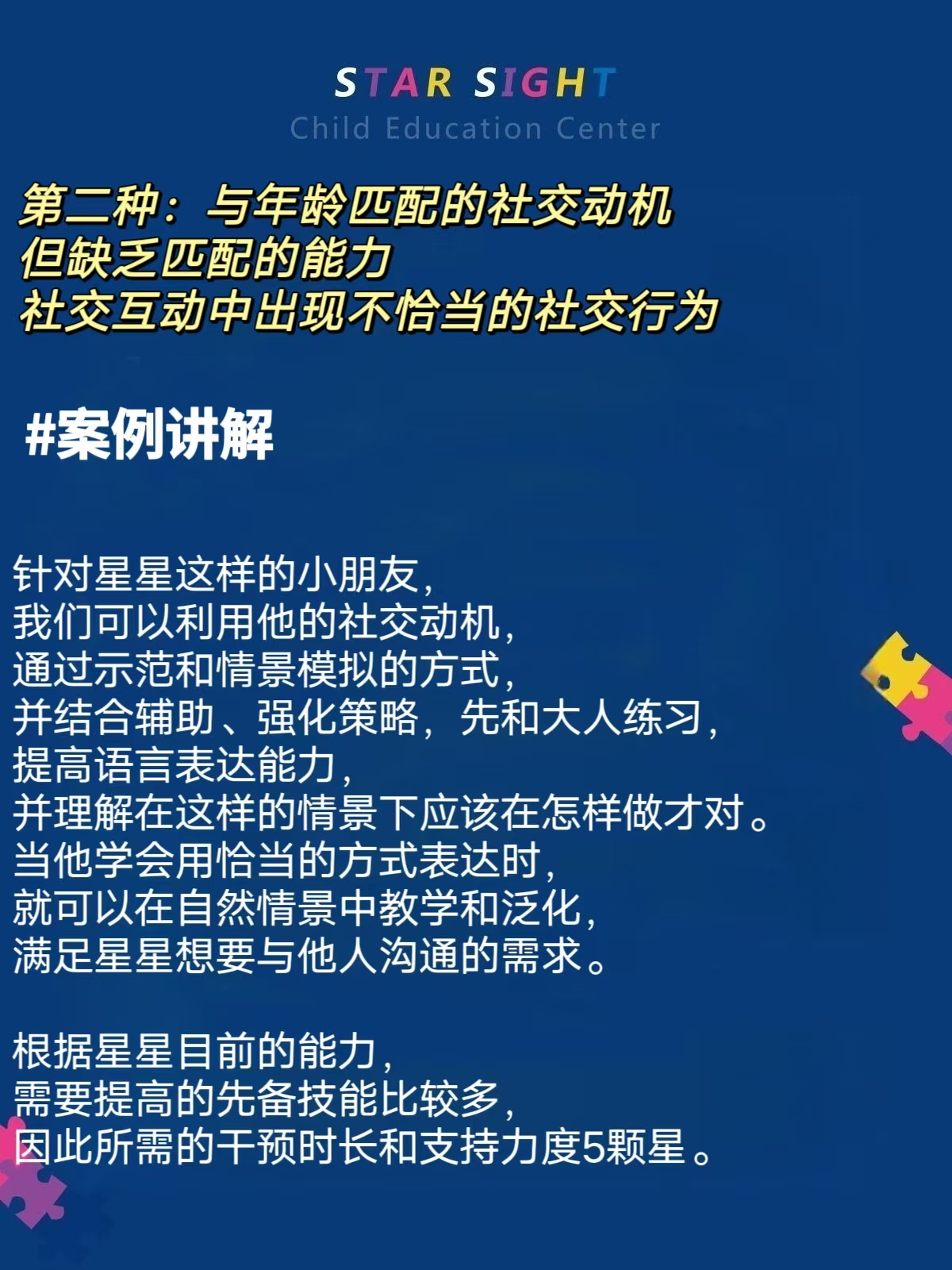通过以上分类分析,我们能够清楚地了解自闭症孩子的社交能力目前处于哪个阶段,卡点在哪里,大概需要的干预时长和干预力度,这样就可以有针对性、有目的地采用策略和方法进行干预了。