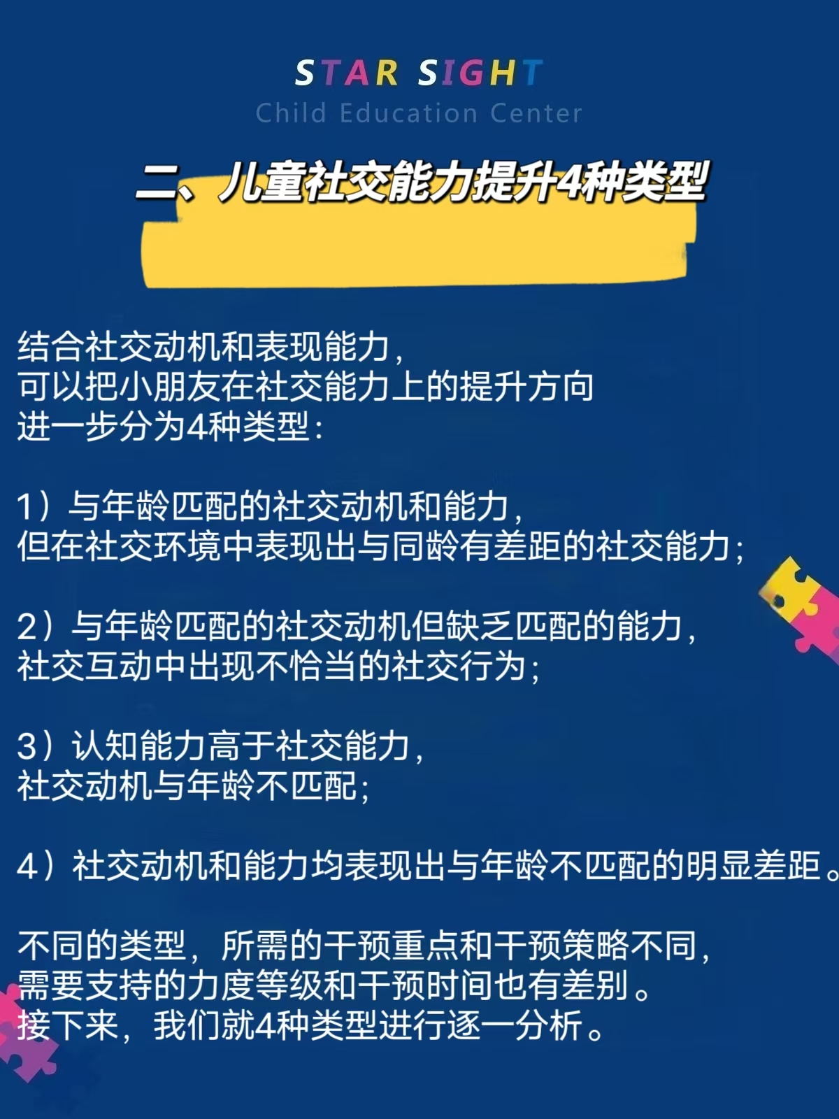 社交需要多种技能在习得后融汇使用。不同的类型,所需的干预重点和干预策略不同,需要支持的力度等级和干预时间也有差别。接下来,我们就针对4种类型进行逐一分析。